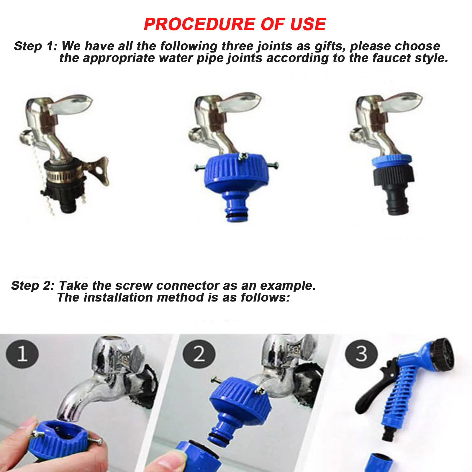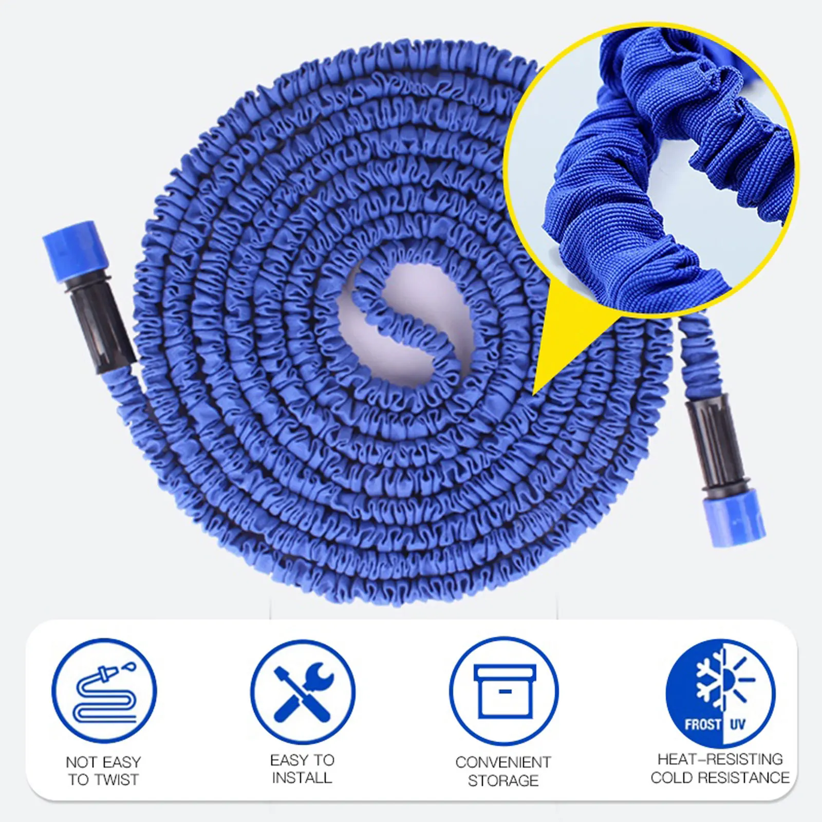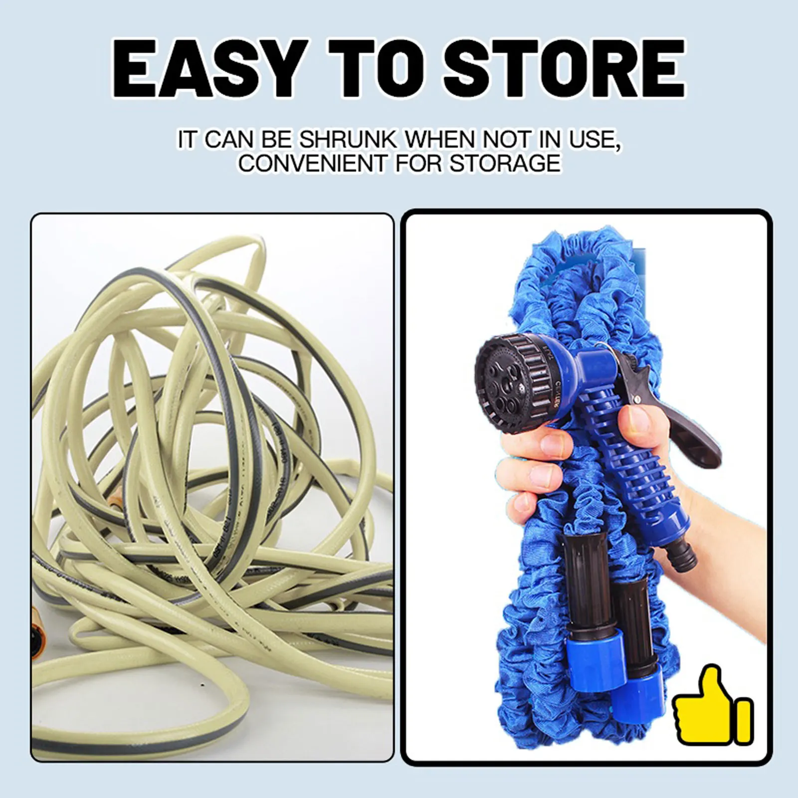 Tuyau d’Arrosage Magique Extensible de 50 Pieds, Pistolet de Lavage de Voiture, Pot en Mousse Flexible, 7 Motifs
