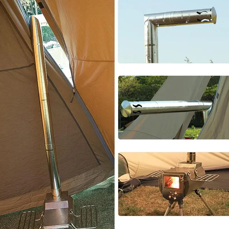 | 4. Expérience de camping améliorée: Les tuyaux courbés à 90 degrés du poêle permettent un réglage flexible, dirigeant la brume à l’extérieur et améliorant la sécurité du camping, et sont conviviaux. |