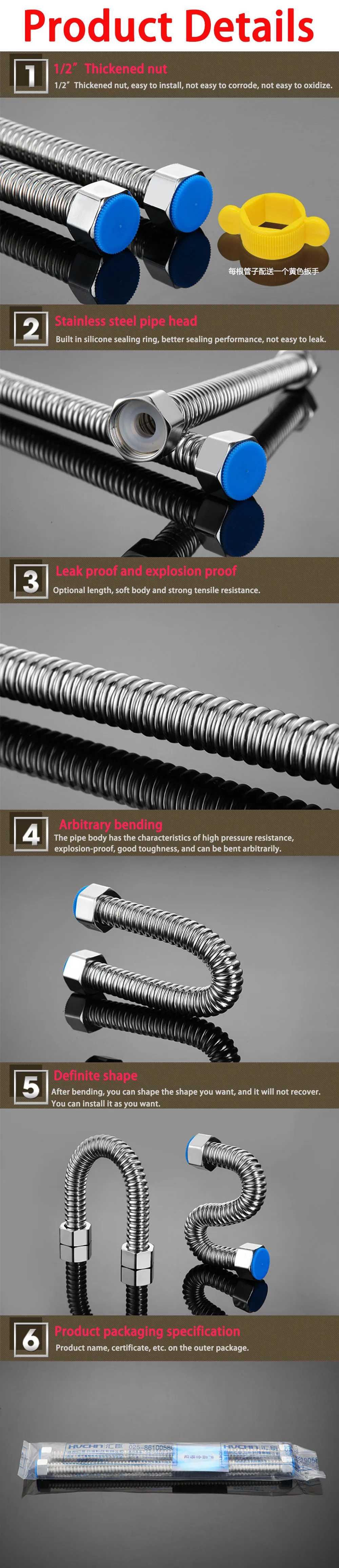 | Tuyau Ondulé en Acier Inoxydable 304, 1/2 Pouces BSP pour Chauffe-Eau et Toilettes Tissées, VPN Sion-Verde | Plusieurs tailles | Acier inoxydable 304 | Eau | ≤ 100 ℃ | G1 / 2 | Résistance à haute température, résistance à la corrosion, résistance à la flexion | 1pcs |