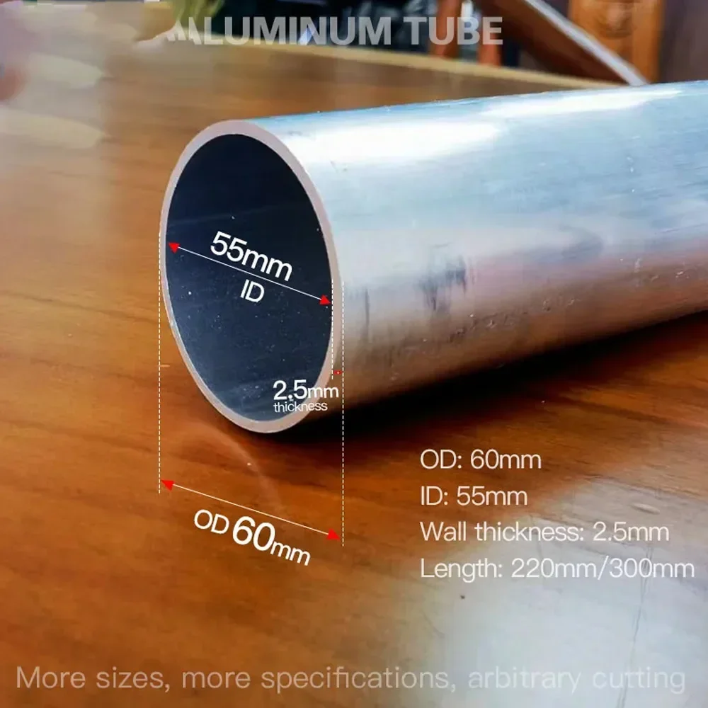 Le tuyau en alliage d’aluminium 2.5mm d’épaisseur, de diamètre extérieur de 60mm, de diamètre intérieur de 55mm et de diamètre intérieur de 220mm est un tuyau circulaire en alliage d’aluminium 6063. Il est disponible en deux longueurs, 220mm et 300mm.