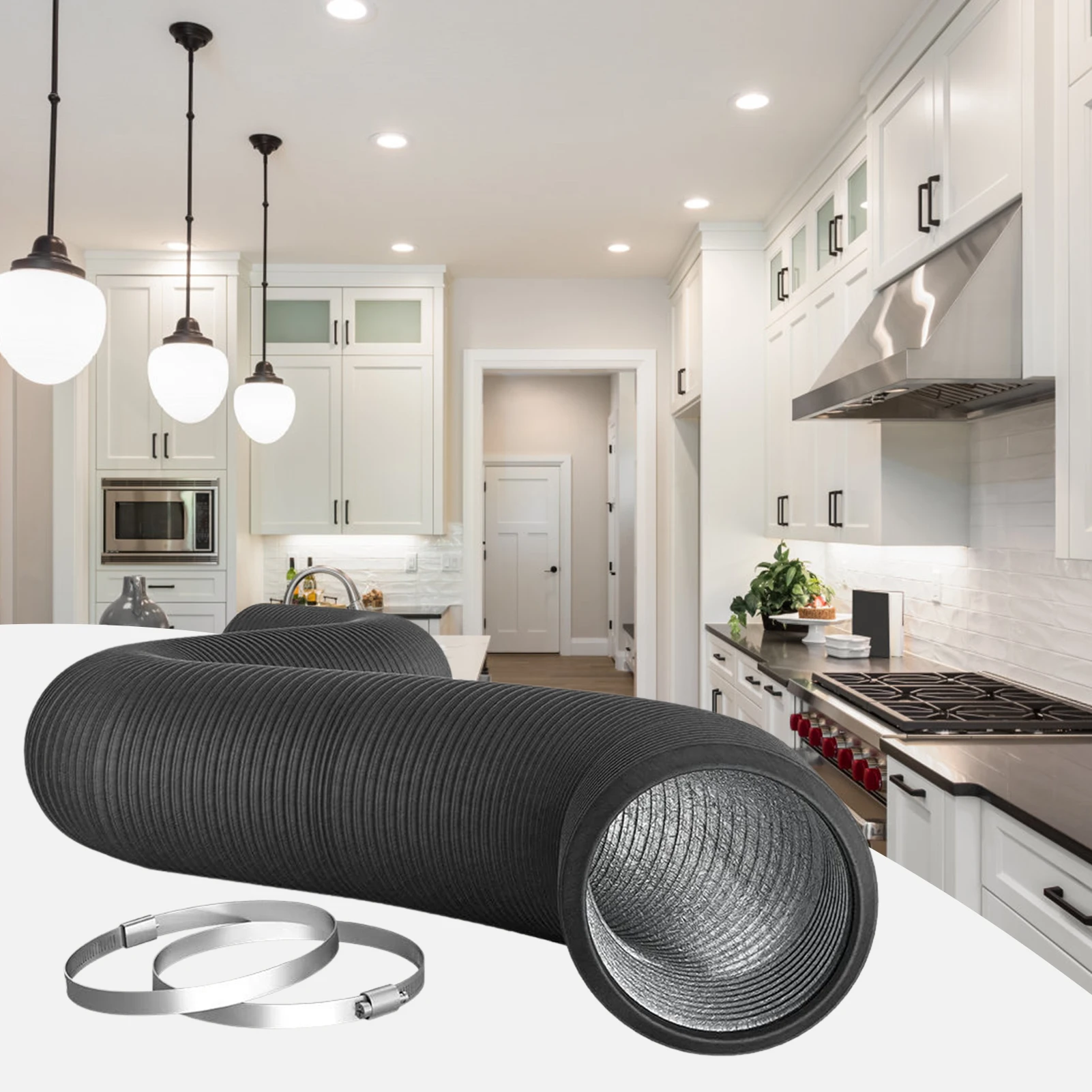 Le tuyau d’évent de séche-linge en aluminium est un conduit de protection à quatre couches rapides, conçu pour la ventilation et la circulation de l’air dans différents environnements. Fabriqué avec un matériau flexible de haute qualité, ce tuyau d’évent offre une performance durable grâce à ses 4 couches d’épaisseur, comprenant une feuille d’aluminium, du PET, un fil d’acier Helix et une autre feuille d’aluminium. Ce revêtement ignifuge assure la sécurité lors de l’utilisation.