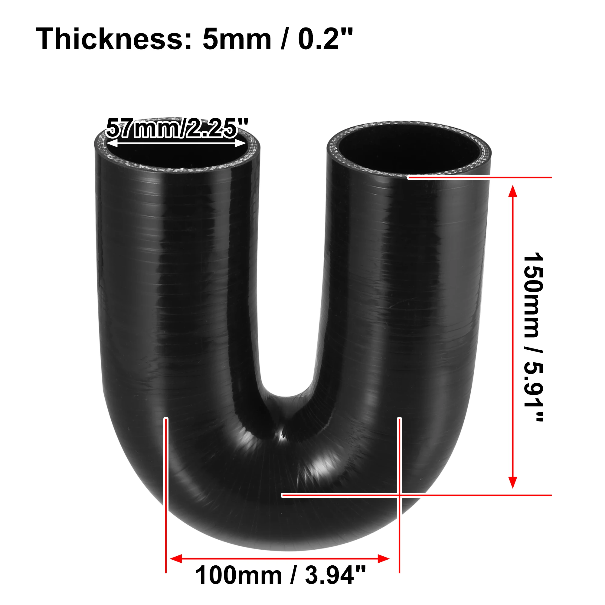 Le tuyau a un diamètre intérieur de 57mm et une longueur de jambe de 150mm.