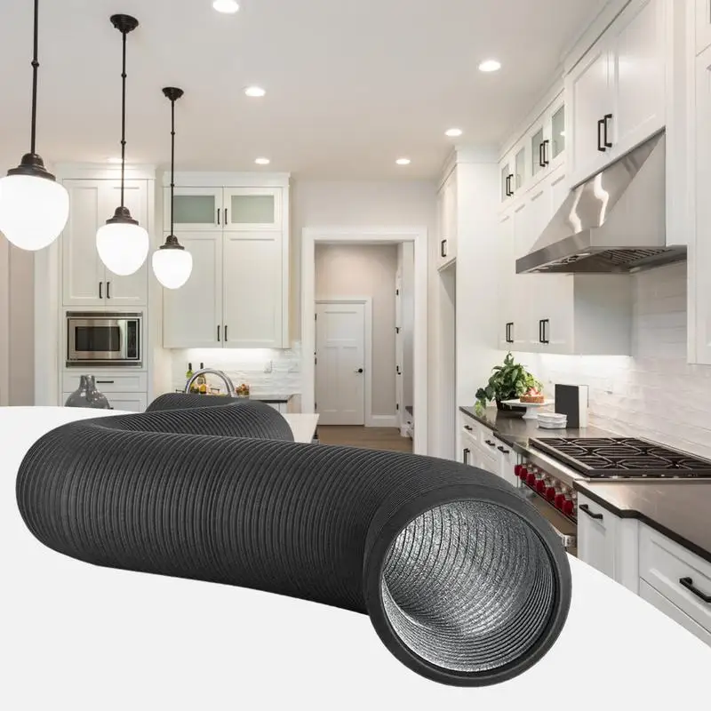 Le tuyau d’évent de sèche-linge en aluminium est conçu pour faciliter la circulation, le chauffage et le refroidissement de l’air. Il est composé de 4 couches d’épaisseur, comprenant une feuille d’aluminium, du PET, un fil d’acier Helix et une autre feuille d’aluminium. Ce revêtement ignifuge et le fil d’acier intégré garantissent à la fois renforcement et durabilité.