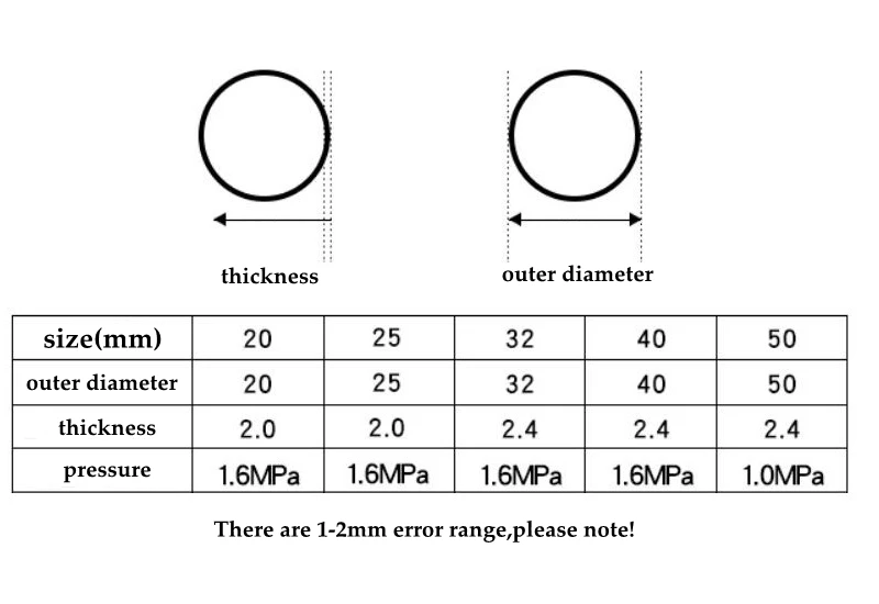 - Diamètre extérieur: 20mm, 25mm, 32mm, 40mm, 50mm