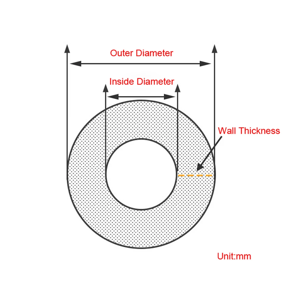 Le tuyau est disponible dans différentes tailles avec des diamètres intérieurs et extérieurs spécifiques :