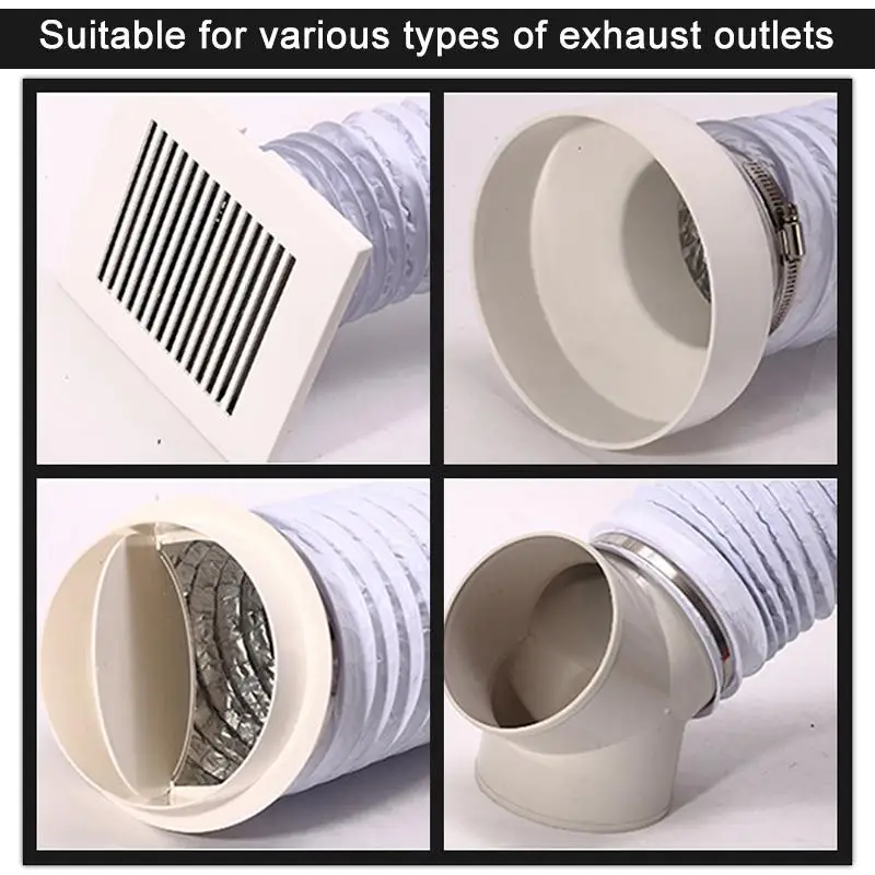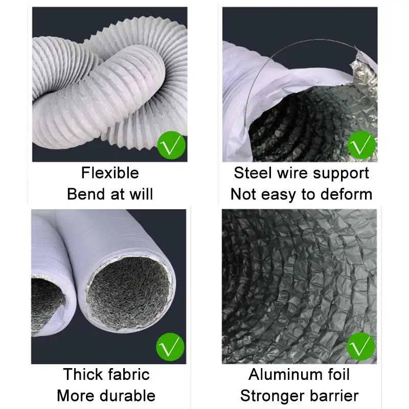 - Conduit flexible en feuille d’aluminium pour une ventilation efficace.