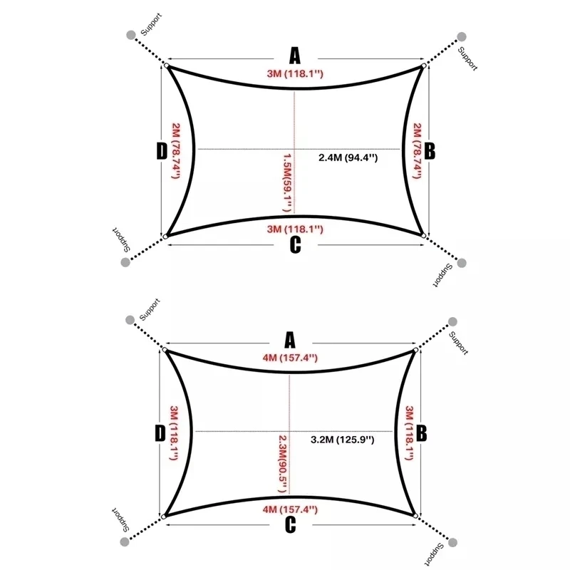 - Anneau D: en acier inoxydable, durable et prolonge la durée de vie de la voile pare-soleil.